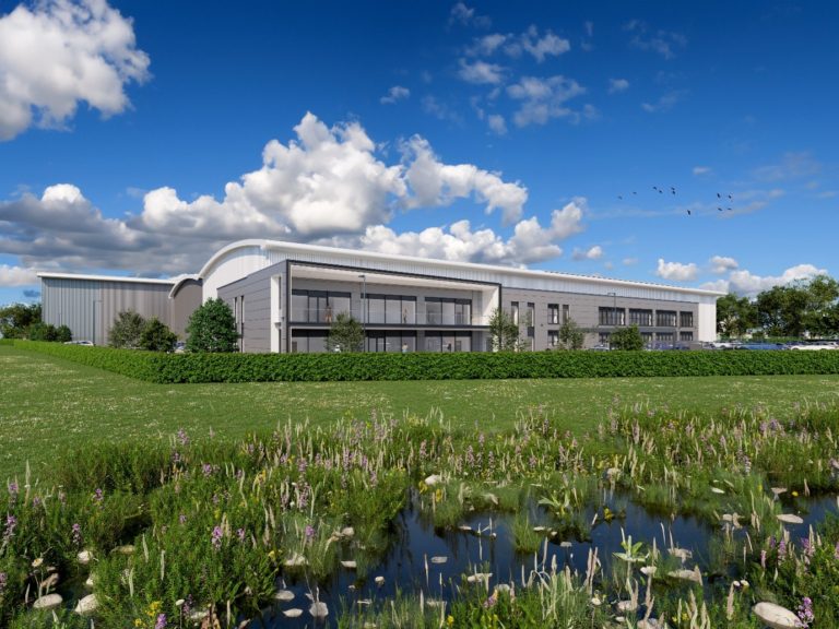 Kenny Leadbeater, Associate at SGP, attended the groundbreaking ceremony for the scheme in September and commented: “It’s exciting to see this scheme break ground and we are excited to be working again with Hampton Brook on this important project which will provide significant new job opportunities for the region and support the expansion of an established local company. Our designs for this pair of quality industrial units respond to their focus on current market needs and the individual context of the site. Hampton Brook is keenly interested in the sustainability of their buildings and these units will aim to be Net Carbon Zero, as well as targeting BREEAM Excellent and an EPC A+ rating.”